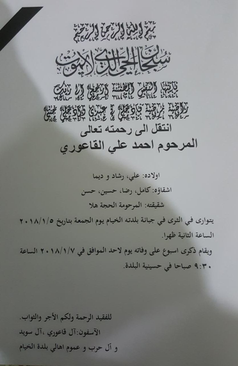 يوارى جثمانه الثرى في جبانة بلدتنا الخيام غدا الجمعة 5 ك2 2018 الساعة التانيه بعد الظهر