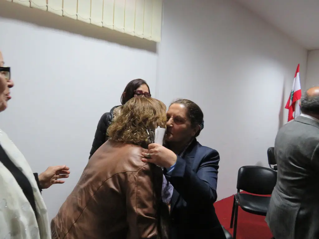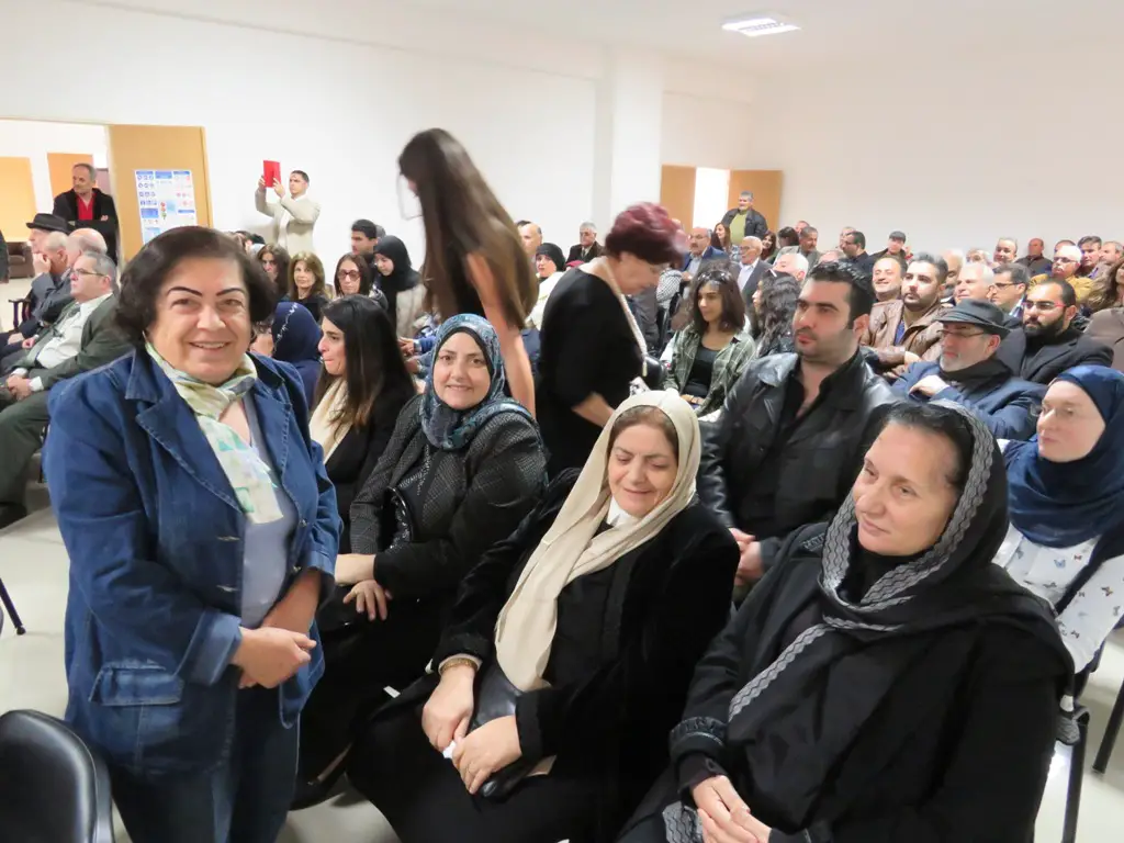 الدكتورة نازك عبدالله في حفل تكريم شقيقها الشاعر محمد عبدالله في نادي الخيام الثقافي الاجتماعي