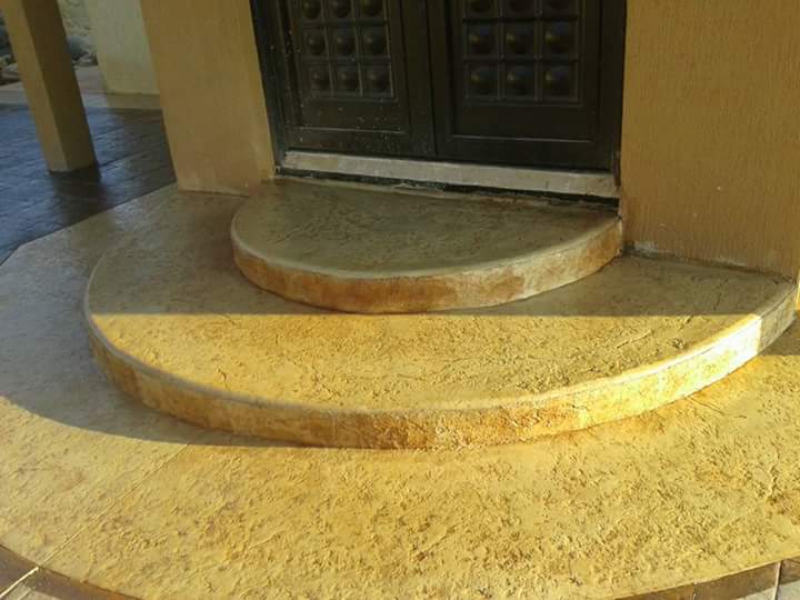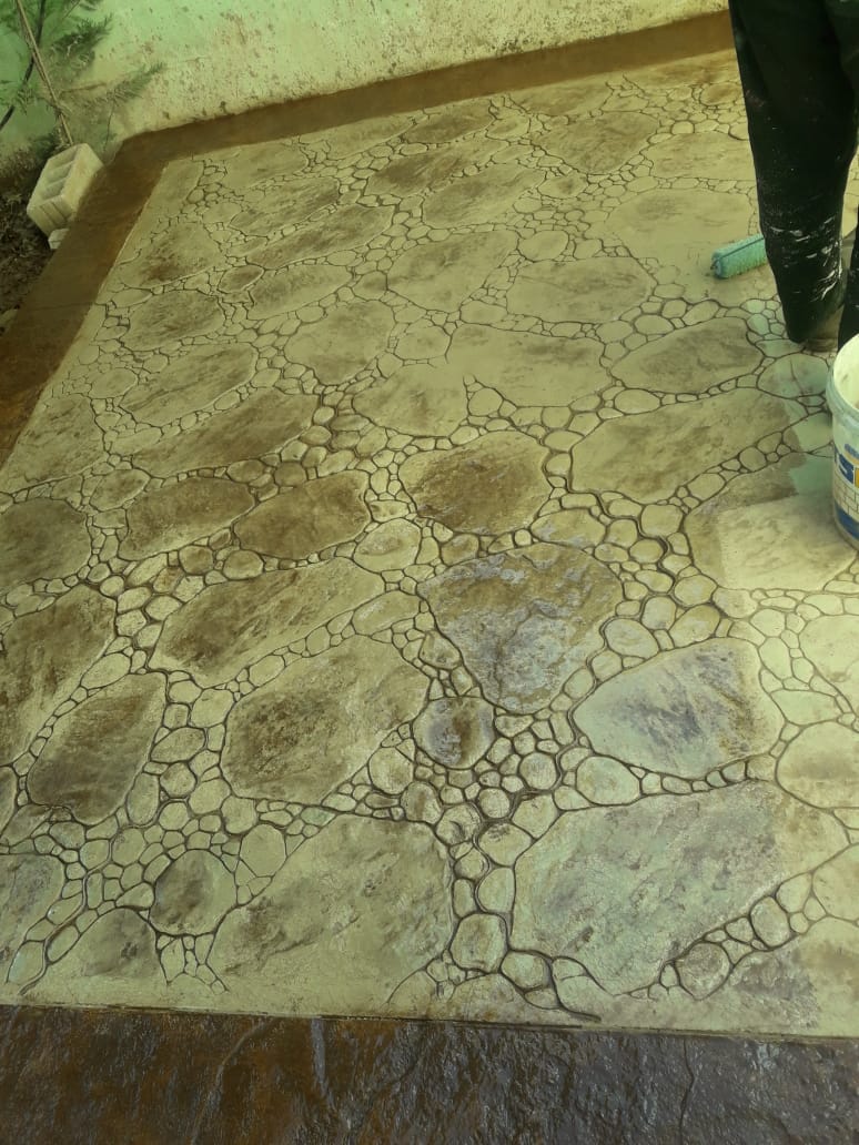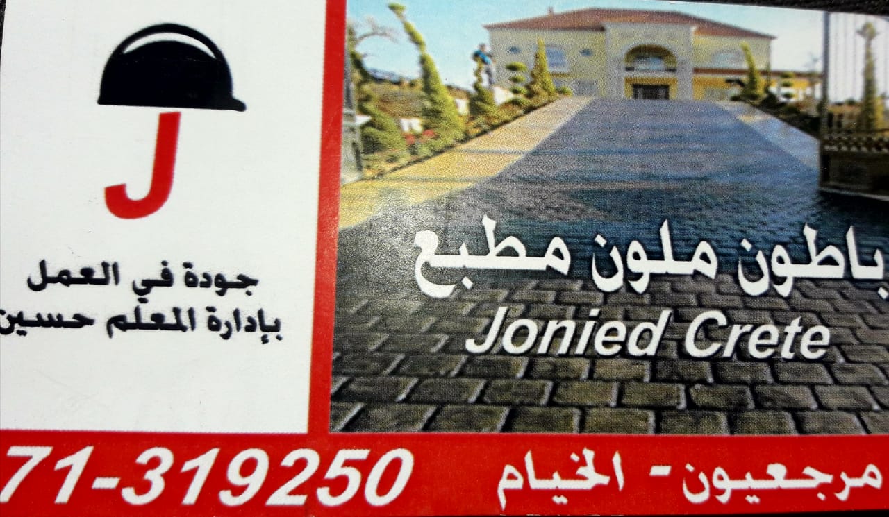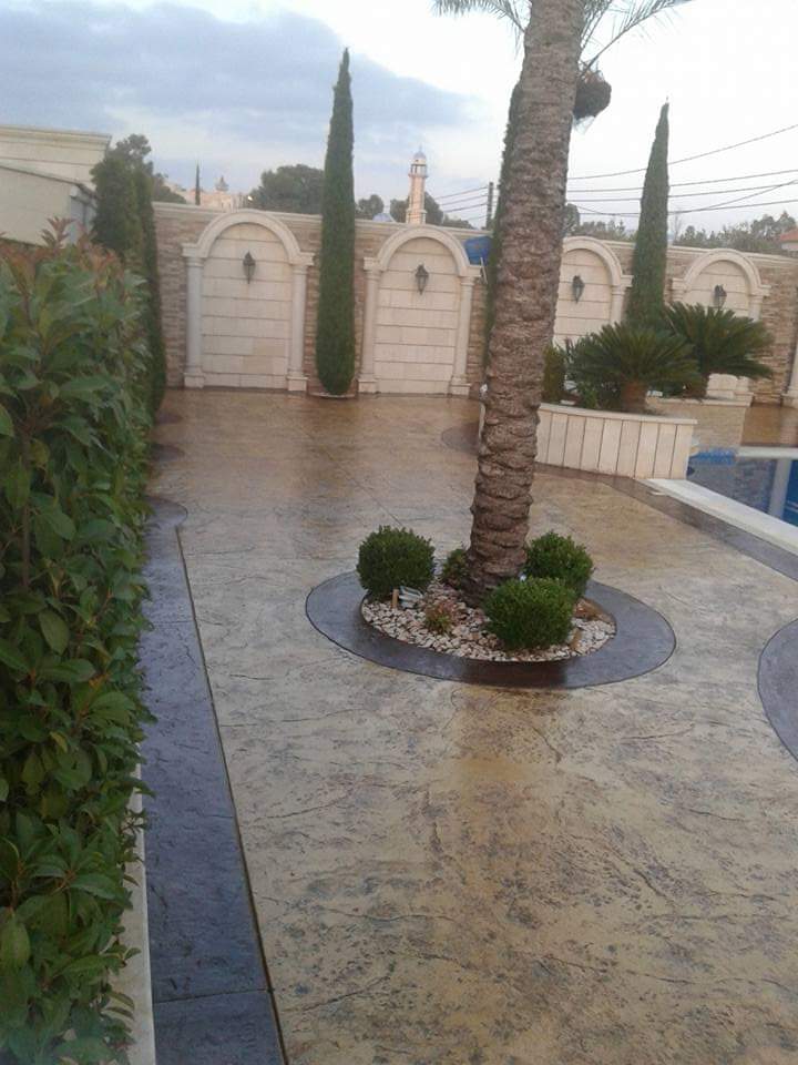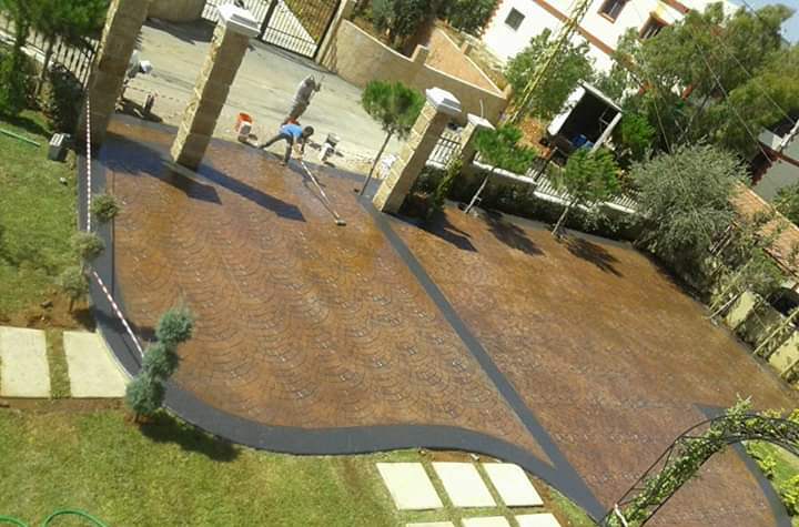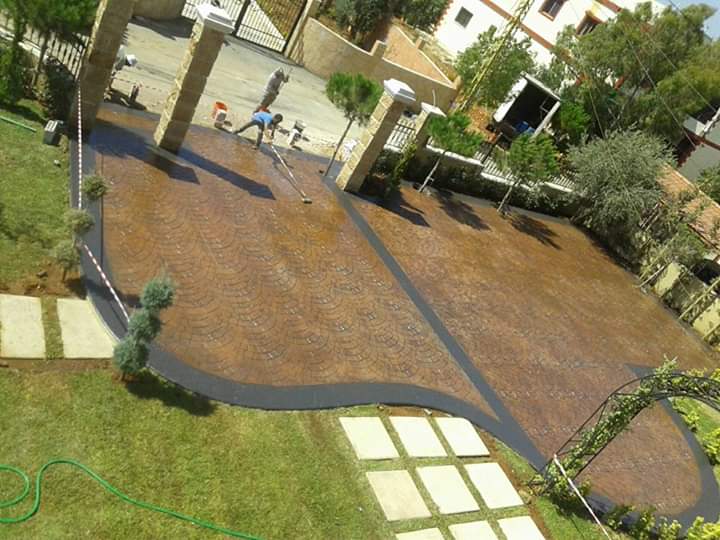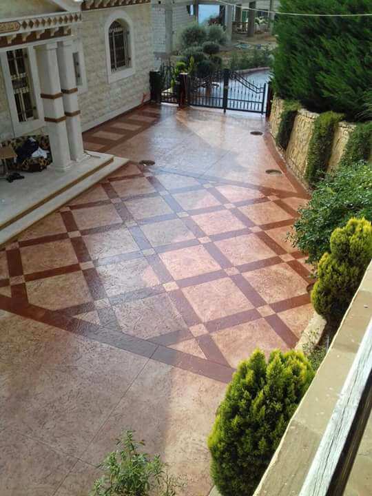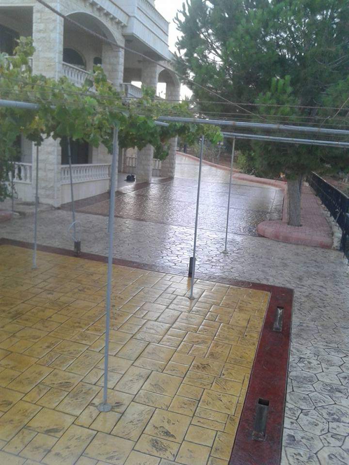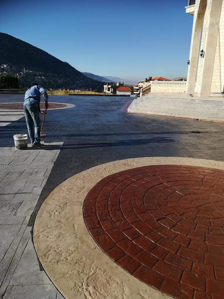 إضافة إلى هؤلاء، تعرفت مؤخراً في الخيام على شخص محترف، من التابعية السورية أيضاً، أبدع في مجال عمله في صبّ الباطون المطبّع في العديد من البيوت والفلل التي عمل بها هو المعلم حسين العمر، الذي نصحني بالإستعانة به مهندس صديق لصبّ أرضية تراس بتقنية الباطون المطبع بدلاً من تبليطها.