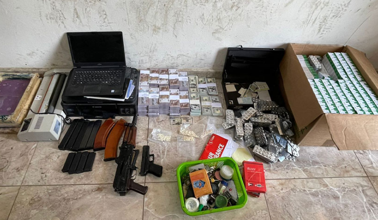 ضبطت في منزله معدات للتزوير، ومبالغ مالية ومستندات مزورة، وكمية من المخدرات، إضافة إلى أعتدة عسكرية وذخائر حربية.