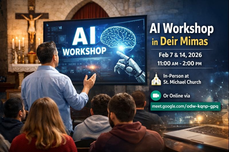في إطار السعي إلى رفع المستوى العلمي والتقني لأبناء المنطقة، تُقام ورشة عمل حضورية وعبر الإنترنت (On Line) حول الذكاء الاصطناعي (AI)، بإدارة المهندس فضيل حاصباني، وذلك بهدف تعريف المشاركين على مفاهيم الذكاء الاصطناعي وتطبيقاته العملية بأسلوب مبسّط وحديث.
