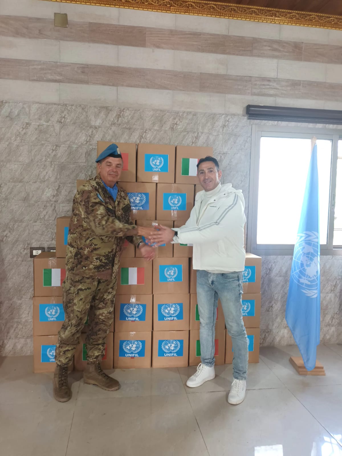 تسلم رئيس بلدية الماري والمجيدية سلمان ابو العلا 100 حصة غذائية من الكتيبة الإيطالية العاملة ضمن قوات القوات اليونيفيل وذلك مركز البلدية، بحضور اعضاء من المجلس البلدي ومخاتير وثمن ابو العلا للكتيبة الإيطالية هذه المبادرة واللفتة الكريمة خاصة في هذه الظروف الصعبة التي يمر بها المواطنون، كما وشكر ابو العلا الكتيبة الإيطالية وقوات اليونيفيل عموما على ما تقوم به من اجراءات وخدمات لتأمين سلامة المواطنين سيما في الظروف الصعبة التي تمر بها المنطقة، آملا استمرار العلاقة الطيبة مع اليونيفيل عموما والتي لم تألوا جهدا في سبيل تأمين الأمن والاستقرار و مساعدة المواطنين في مختلف المجالات.
