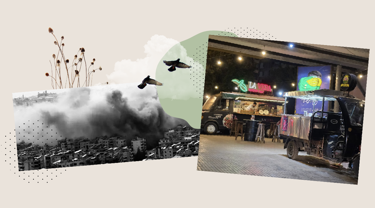 تحت جسر بئر العبد، يقف شابّ عشرينيّ خلف عربته الصغيرةل ”La Vera“ يبيع البيتزا على الحطب. يقول: ”بدأت أشتغل خلف العربة قبل الحرب، وكانت فكرة شبابيّة بسيطة ولاقت رواجًا كبيرًا. بعد توقّف الحرب بشهرين عدت لاستأنف العمل على رغم الخسائر“.