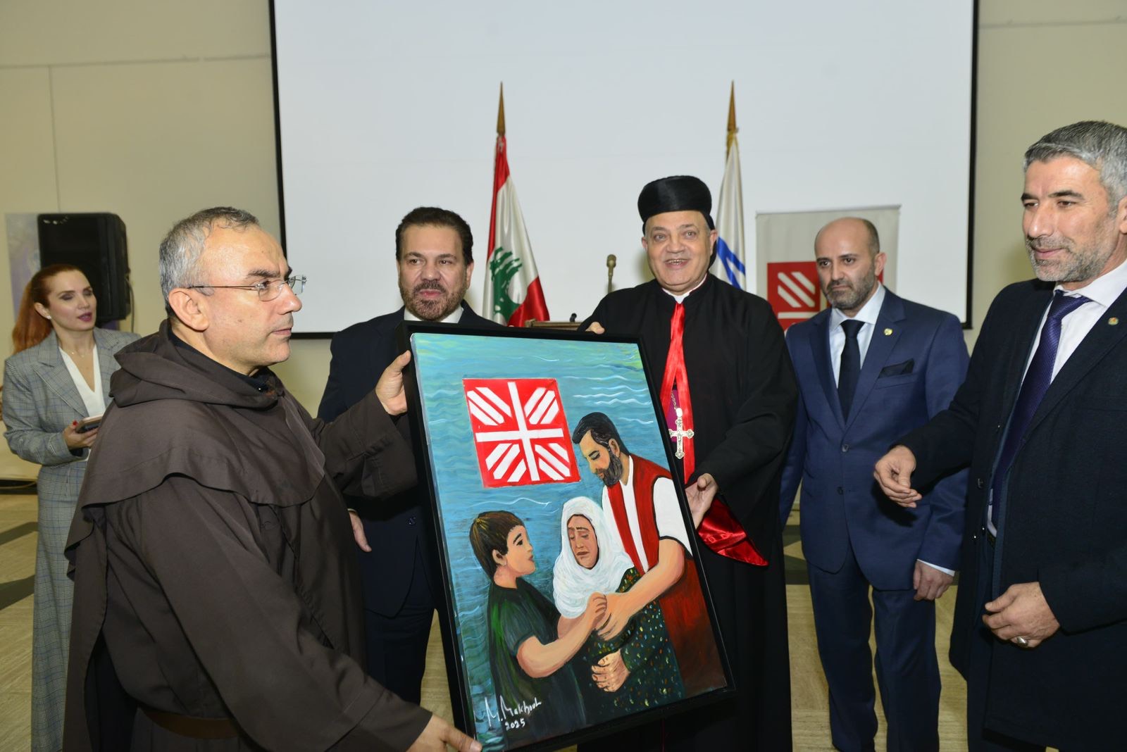 وفي كلمة ممثّلِ صاحب الغبطة، المطران الياس نصار، تم التأكيد على غنى لبنان بتنوّعه، داعياً اللبنانيين إلى الالتئام والتكاتف لإظهار صورةٍ نَيِّرةٍ عن نعمةِ التعاضدِ والالتحام. كما نوّه المطران نصار بالدور المحوري للفنان مخّول في نقلِ هذه الرسالة الإنسانية عبر ريشته وأعماله.