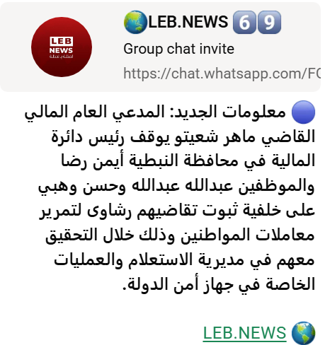 وزارة المالية - التوقيفات في مالية النبطية لم تصل إلى بيروت رغم وجود فضيحة كبرى هناك (مصطفى جمال الدين)