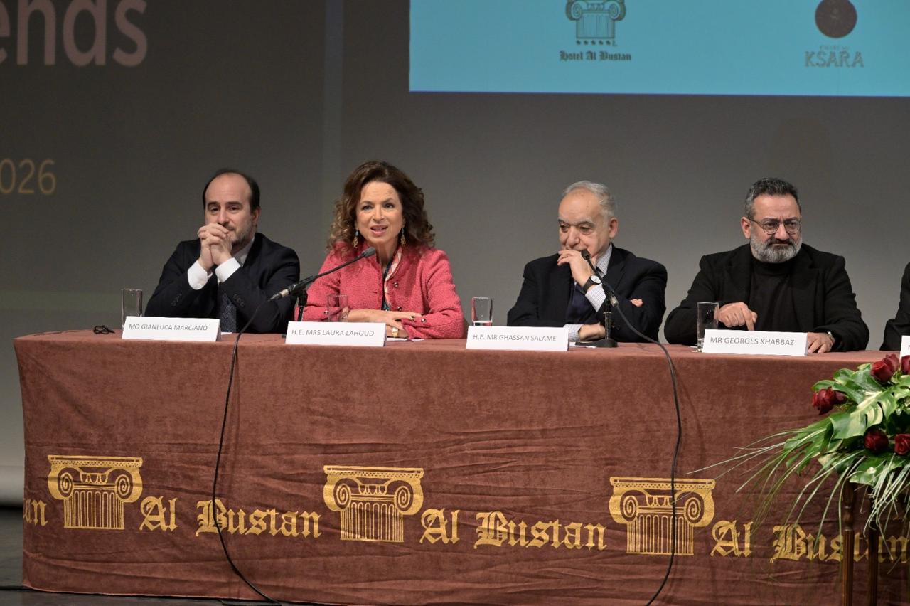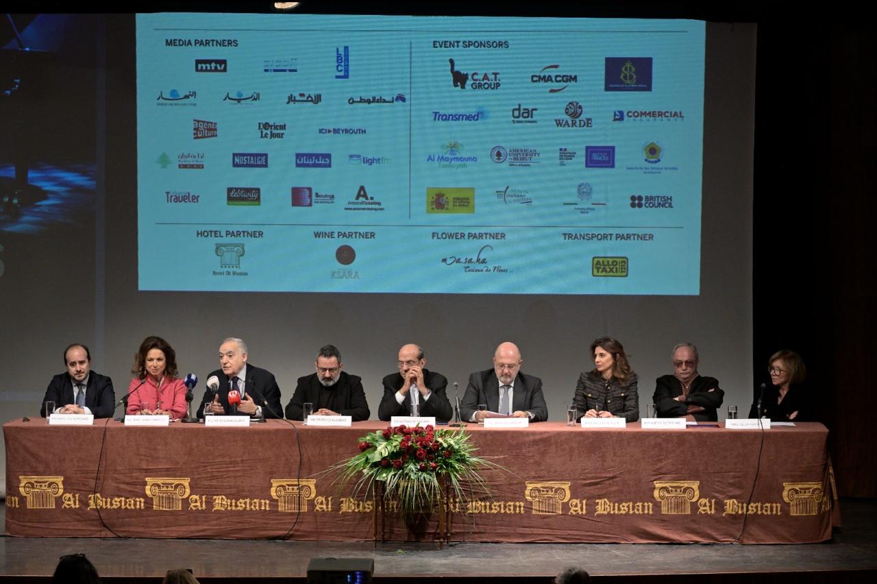 إلى جانب وزير الثقافة غسان سلامة وأعضاء لجنة المهرجان، حضرت في القاعة مؤسسة الحدث، ميرنا البستاني، التي كرّمتها ابنتها لورا بتحية وابتسامة حب، كما ذكرت خلال المؤتمر.