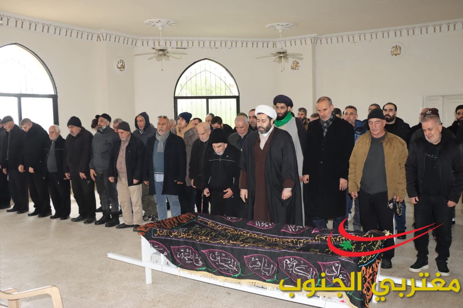انطلق موكب التشييع من امام منزل صهرها وصولاً الى حسينية الزهراء عليها السلام حيث ام الشيخ الصلاة على جثمانها الطاهر قبل ان توارى الثرى ثم تقبلت عائلة الفقيدة العزاء من المشيعين.