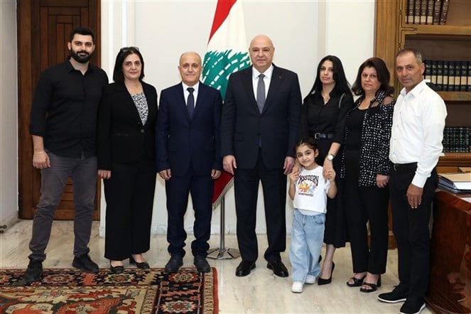 استقبل رئيس الجمهورية العماد جوزاف عون بعد ظهر اليوم في قصر بعبدا، عائلة الرائد الطيار الشهيد جوزف حنا، الذي ضم والده الدكتور ميشال حنا، وارملة الشهيد السيدة ايفانا حنا وطفلتهما لين حنا، والسيدة أميرة الحاج وايلي حنا، بول حنا، والمختار كميل حنا والسيدة امال حنا.