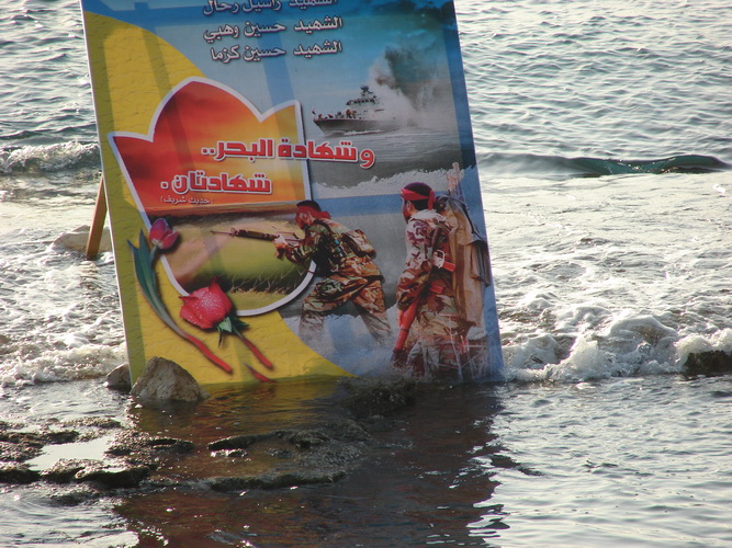 كما زرعت رايات النصر وانتشرت القوارب التي علتها الأعلام اللبنانية وأعلام حزب الله و وزعت الورود الحمراء على سطح المياه التي شهدت على بطولة واستبسال المقاومين، كما نصبت جدارية على سطح مياه البحر كتب عليها أسماء الشهداء الستة وعبارة (شهادة البحر شهادتان) كما خطت فتاة رسالة لهؤلاء الأبطال عبَّرت فيها عن إفتخار وعزة لما قاموا من عمل بطولي ووضعتها في زجاجة ورمتها إلى البحر.