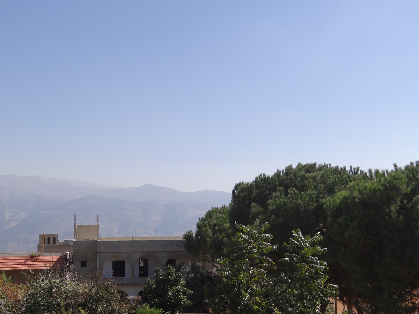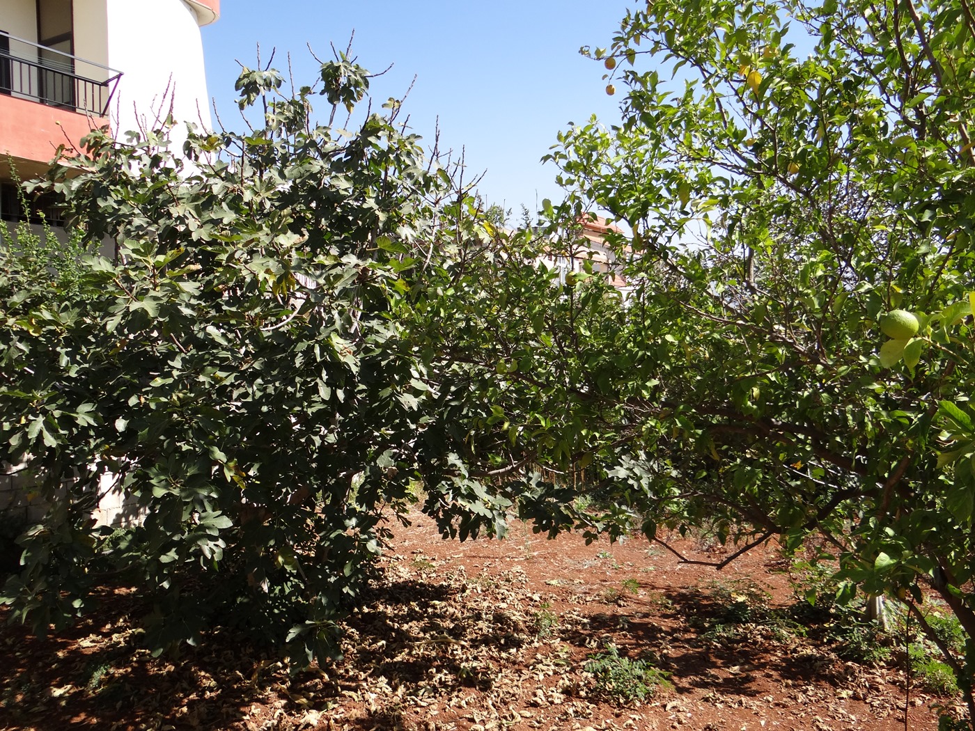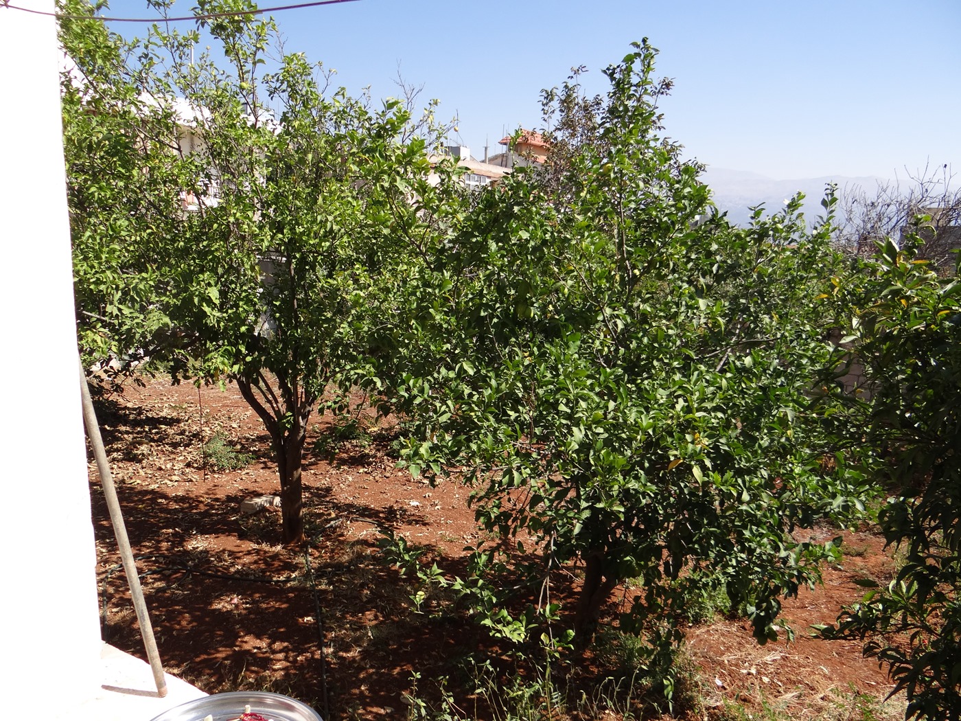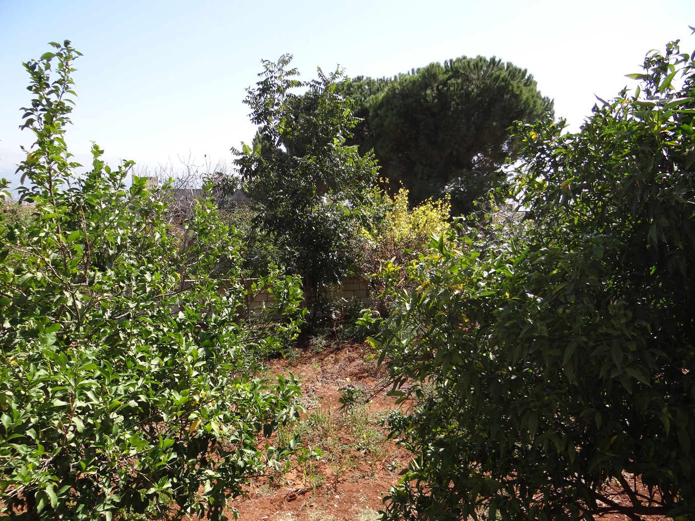 بناء حجري تحيطه حديقة تحوي على أشجار مثمرة متنوعة معروض للبيع في الخيام.