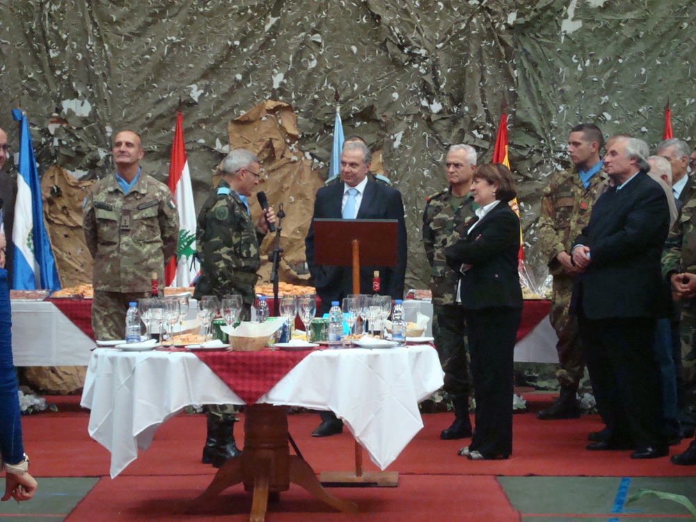 وختم بكلام مؤثر، "أود أن أقول لكم، إن الكتيبة الأسبانية التاسع عشر في لبنان، ستغادر هذا البلد بالجسد، إلاّ أن الذكريات الطيبة ستبقى دائماً في عقولنا قلوبنا، والامل بمستقبل افضل للشعب اللبناني".