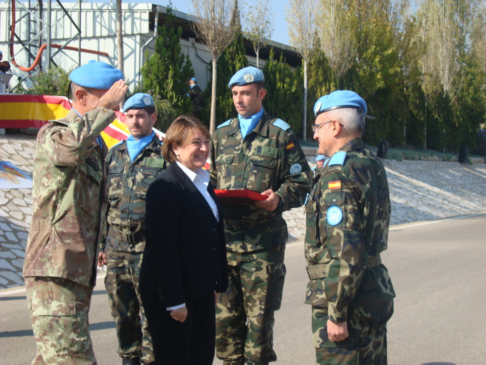 وفي الختام، قلّد العميد الركن شربل ابو خليل، باسم رئيس الجمهورية العماد ميشال سليمان، وسام الاستحقاق اللبناني الى الجنرال المغادر لوبيز تقديرا له. كما و قلد قائد الكتيبة الاسبانية المغادر خوسيه ماريا اورتيغا باسم وزير الدفاع فاير غصن وسام الارز من رتبة ضابط تقديرا له .