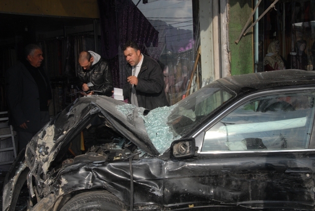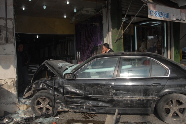 وفي التفاصيل ان شخص من التابعية السورية كان يقود سيارة بي ام دبليو قرابة الثامنة من صباح اليوم بسرعة جنونية قادما من شارع محمود فقيه، عندما فقد السيطرة عليها لحظة اقترابه من محيط النادي الحسيني فجنحت به بسرعة مريب واجتاحت محلات تجارية لمؤسسة جهاد برجاوي لبيع الالبسة والثياب ، وألحق اضرار مادية كبيرة فيها، ولم يتسبب بوقوع اي اصابات في الارواح.