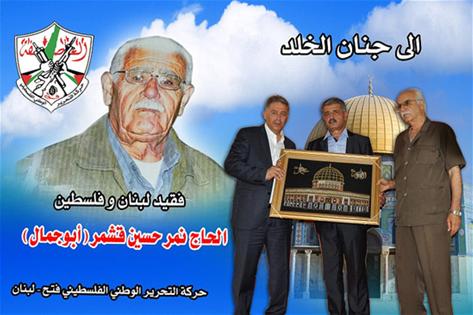 وأضاف: «إنّنا نفتقد لمثل المناضل أبو جمال الذي كان بالرغم من تقدّمه في العمر كان يملك الروح الثورية والشخصية النضالية المقدامة دائما في كافة المواقع، فلك التحية من أبناء القضية قضية المعذبين في الارض الشعب الفلسطيني الذين احبوك ولن ينسوك يسجل التاريخ باحرف العزة اسمك في صفحات وسجلات الكرامة الفلسطينية».