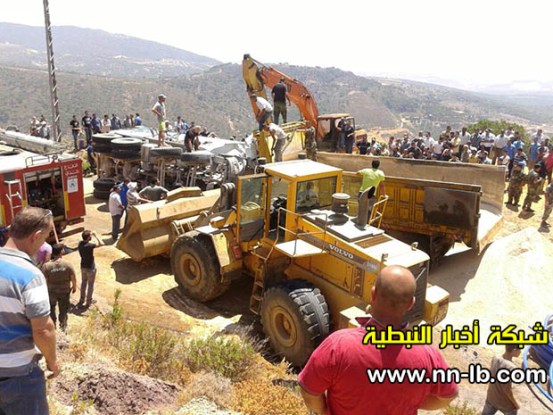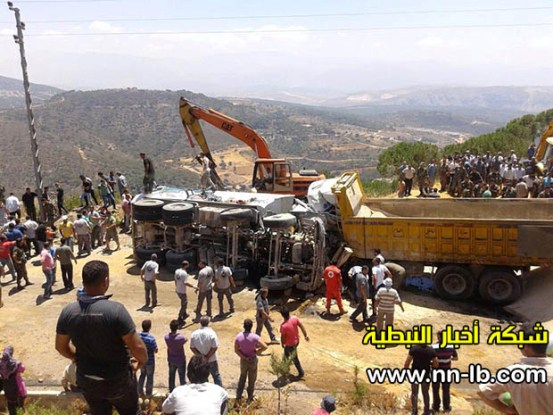 وتسببت قوة الاصطدام بانقلاب الشاحنتين على جانب كل منهما ، وحضرت الى المكان عناصر من الهيئة الصحية الاسلامية وشرطة الريحان والعشرات من المواطنين وعملوا بصعوبة على سحب القتيل والجريح من داخل الشاحنتين وتم نقلهما الى مستشفى النجدة الشعبية في النبطية