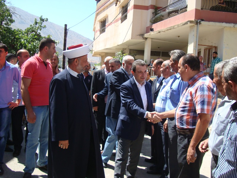 بعد ها انتقل الوزير ابو فاعور والوفد المرافق الى قاعة الجامع، حيث رفض ان تنحرالخراف له، وكان في استقباله النائب قاسم هاشم وحشد من الاهالي وقرى الجوار.