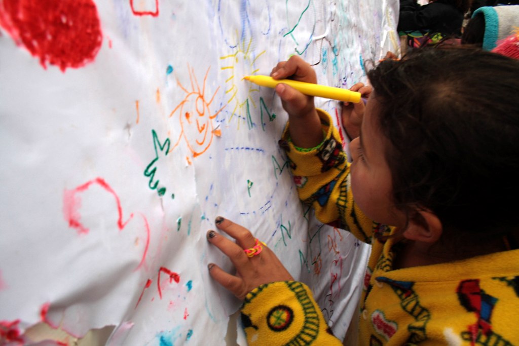 يوم لرسم الجداريات على خيم النازحين في مخيم مرج الخوخ - قضاء مرجعيون