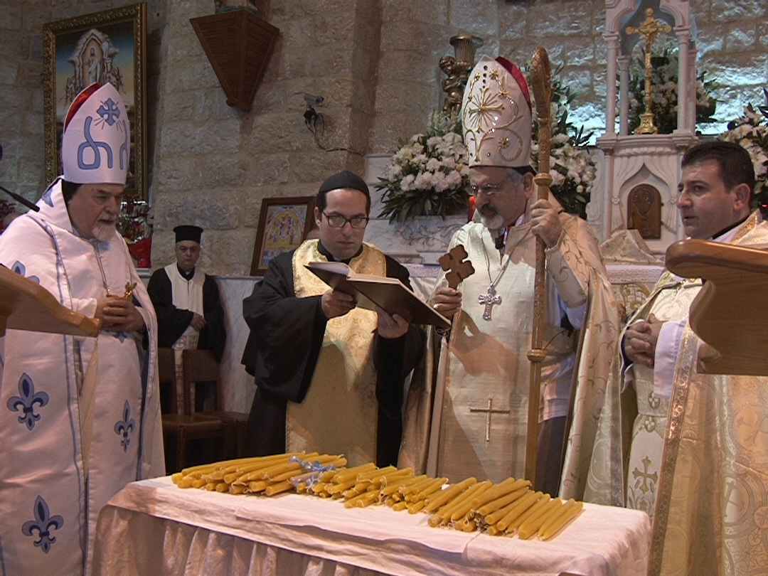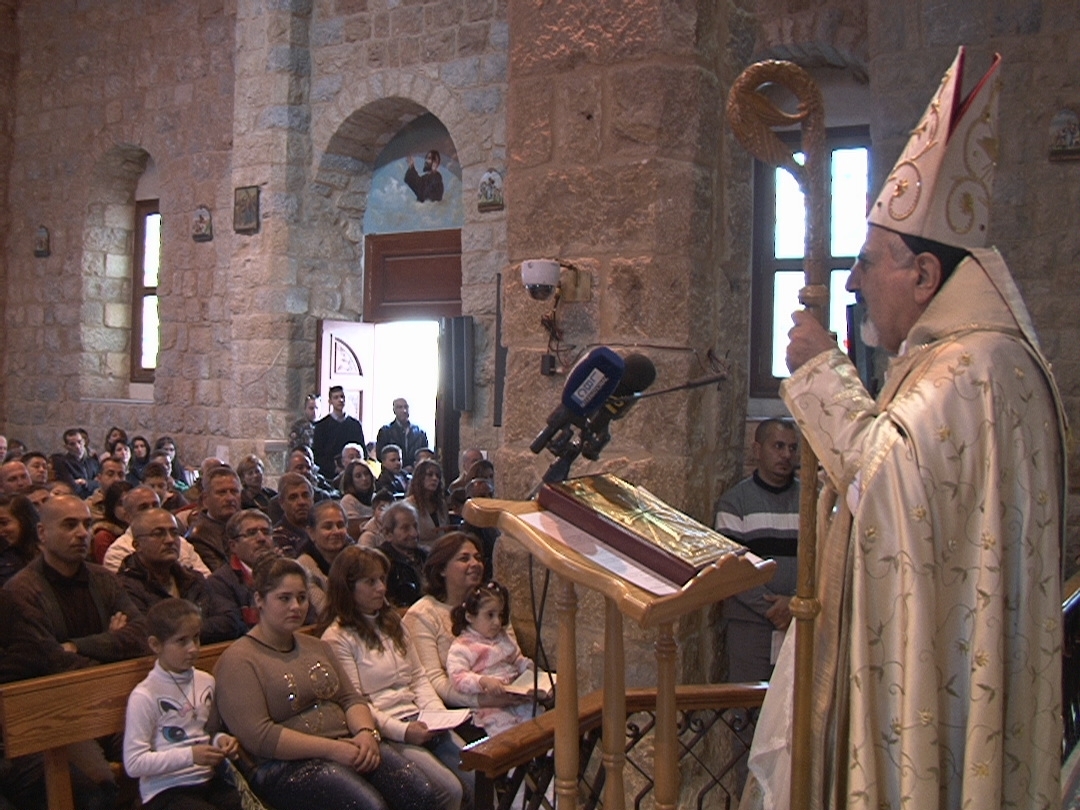 وعلى وقع التصفيق والزغاريد دخل البطريرك يونان كنيسة مار جرجس للموارنة ، حيث ترأس قداسا احتفاليا لمناسبة عيد دخول المسيح الى الهيكل، يعاونه كاهن و كهنة عراقيون وخدمت القداس جوقة من العراقيين النازحين.