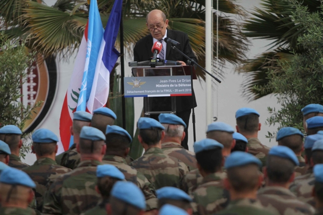 تفقد وزير الدفاع الفرنسي جان ايف لودريان كتيبة بلاده العاملة ضمن إطار القوات الدولية في جنوب لبنان، التي وصلها على متن مروحية دولية حطت به في مهبط المروحيات التابع للكتيبة الفرنسية في بلدة دير كيفا قضاء صور، حيث كان في استقباله قائد كتيبة دامان 23 الكولونيل هازار Hazardوكبار الضباط .