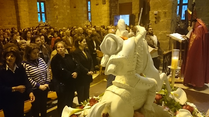 شارك فيه رئيس البلدية شفيق ونّا، وقائد الكتيبة الاسبانية المقدم انطونيو يورنت وضباط دوليين من الأسبان والفرنسيين الذين يتخذون من القديس جرجس شفيعاً لفرقة الخيالة، وحشد من أهالي البلدة وقرى الجوار والفعّاليات الذين تقاطروا إليها للتبرك وإيفاء النذور وإضاءة الشموع ورفع الصلوات .