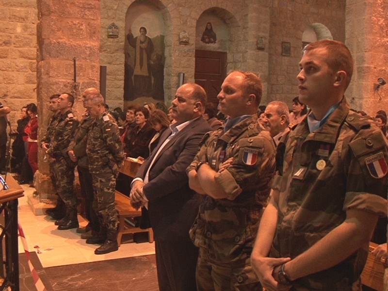 وفي ختام القداس،أقيم عرض عسكري رمزي لعناصر الوحدة الفرنسية، ثم انشدت نشيد الخيالة بعد تلاوة قائد الفرقة أمر اليوم العسكري وموجز عن السيرة الذاتية للقديس جاورجيوس الذي يعد شفيع لواء الخيالة في الجيش الفرنسي نالت اعجاب الحضور.