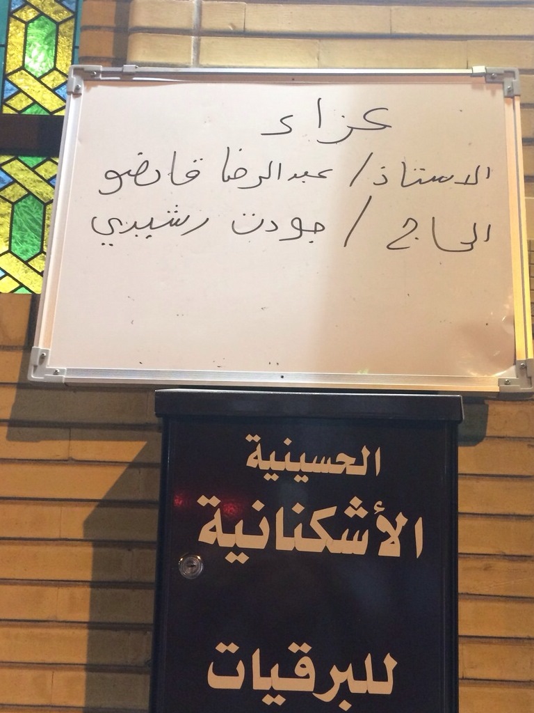 أقيم مجلس عزاء في الكويت في الحسينية الأشكنانية على روح المرحوم المربي الفاضل عبد الرضى قانصو والمرحوم الحاج جودت رشيدي ليلة الجمعة الماضية الموافق 7/5/2015.