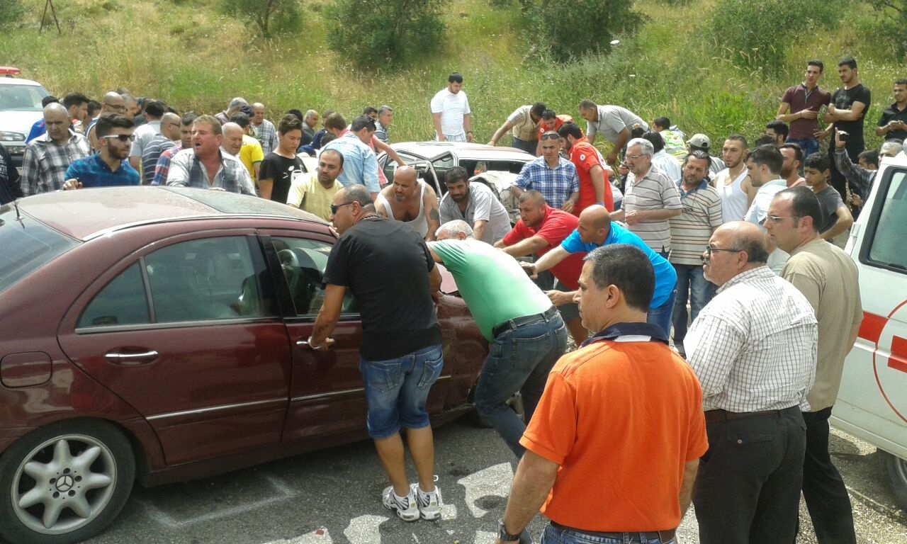 علما ان الحادث ادى الى زحمة سير في الاتجاهين نتيجة تسرب الزيت من محركات السيارتين ، حيث عمل شبان على فلش مادة الرمل على الطريق منعا للإنزلاق وحفاظا على السلامة العامة.