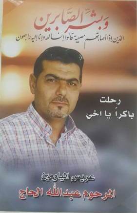 خرج عبدالله الحاج صباح أمس من منزله، حضن ابنه حسين وصغيرته جوجو، ودّع فاطمة وقبّلها ومضى في طريقه. زار شقيقه نمر، حضنه وودّعه، اطمأن على العائلة وانطلق. كانت تصرّفاته غريبة، كأنه ذاهب في رحلة بعيدة بينما هو يعمل مياوماً في شركة الكهرباء.