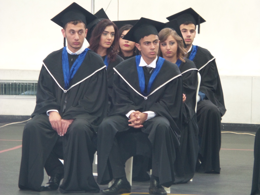 وفي الختام، جرى توزيع الشهادات على الخريجين والخريجات، وجوائز مالية للمتفوقين، ثم تقبل الخريجون التهاني وتم قطع قالب حلوى بالمناسبة، وإختتم الإحتفال برمي الخريجين والخريجات القبعات في الهواء.