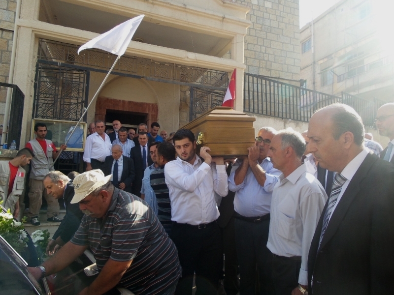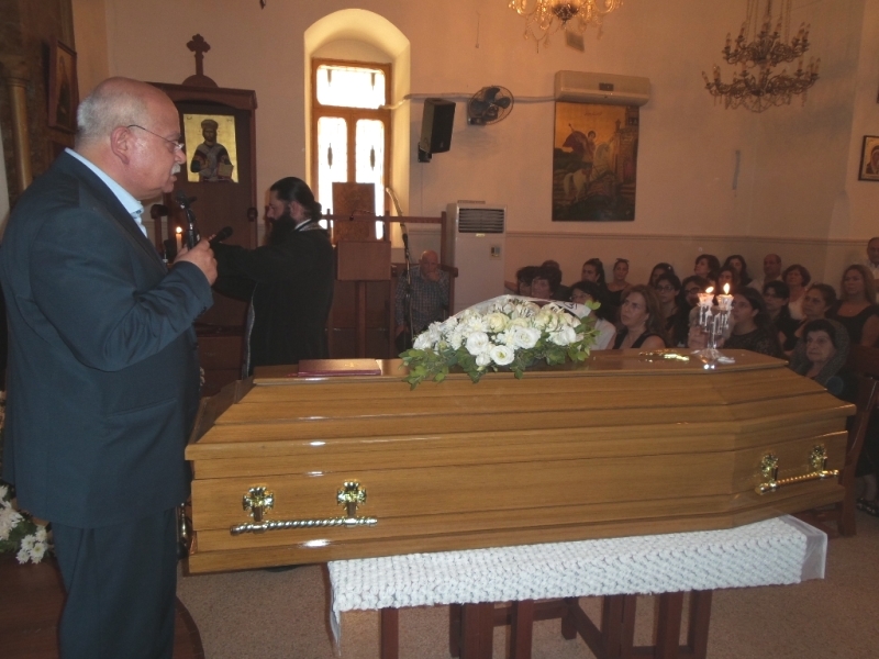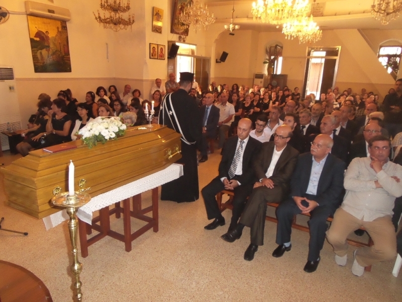 ورأس صلاة الجناز لراحة نفسه راعي ابرشية صور وصيدا ومرجعيون للورم الاثوذكس المتروبوليت الياس كفوري في كنيسة القديس جاورجيوس للروم الارثوذكس في مرجعيون، يعاونه لفيف من كهنة الرعايا. شارك فيها امين عام الحزب الشيوعي الدكتور خالد حدادة على رأس وفد من مكتب الحزب، والامين العام السابق فاروق دحروج، والسيد سامر نقفور ممثلا النائب اسعد حردان، وحشد من المحازبين والمناصرين للحزب الشيوعي قدموا من مختلف المناطق اللبنانية، وحشد من الاهالي وعائلة الفقيد.
