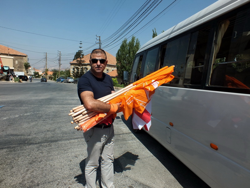 حافلة تنطلق ملوحة بالأعلام اللبنانية وأعلام التيار - صورة مايا العشي – مرجعيون