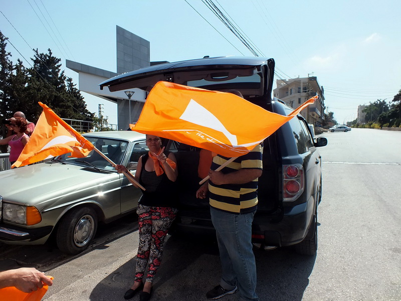 مناصرو التيار في مرجعيون يستعدون للإنطلاق إلى التظاهرة في ساحدة الشهداء - صورة مايا العشي – مرجعيون