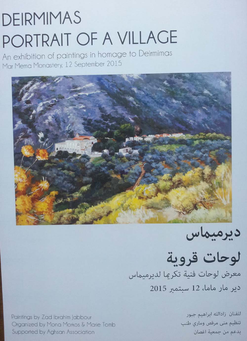 وبعد قص شريط الافتتاح القى مرقص كلمة قال فيها: هذا المعرض الذي يضم 22 لوحة هدفه تأريخ البلدة 2015، ومن هذه اللوحات اقمنا بعض النسخ وكرت بوستال للذين يريدون زيارة البلدة وياخدوا ذكرى لهذا الدير ولبلدة ديرميماس وينشروها في انحاء العالم. وشكر مرقص الفنان زادالله جبور الذي زود الجمعية بهذه اللوحات الزيتية، كما شكر منى مرقص وماري طنب على جهودهما في انجاز هذا العمل الفني الرائع.