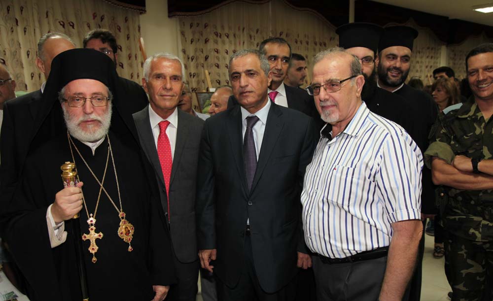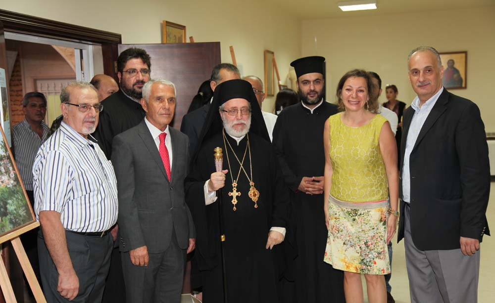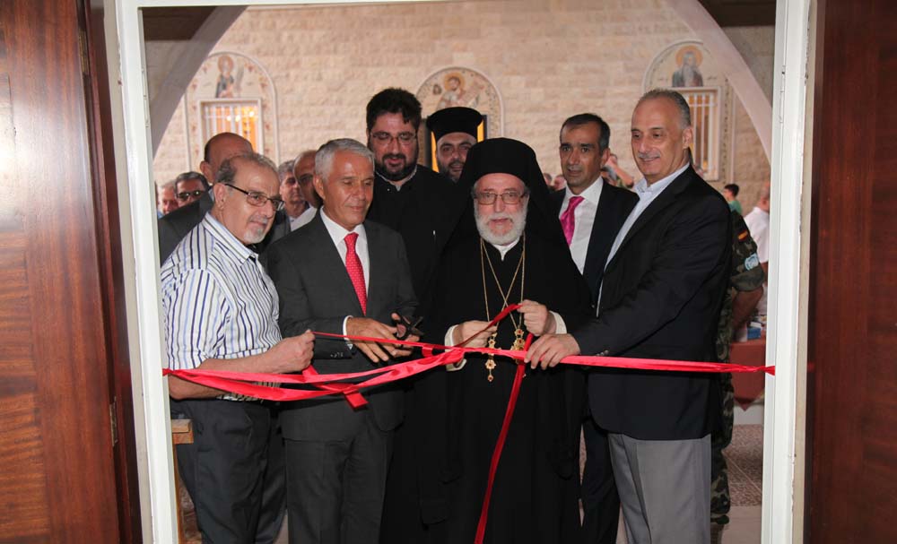 المطران كفوري والدكتور مرقص ومدير مستشفى مرجعيون كلاكش يقصون شريطة افتتاح المعرض