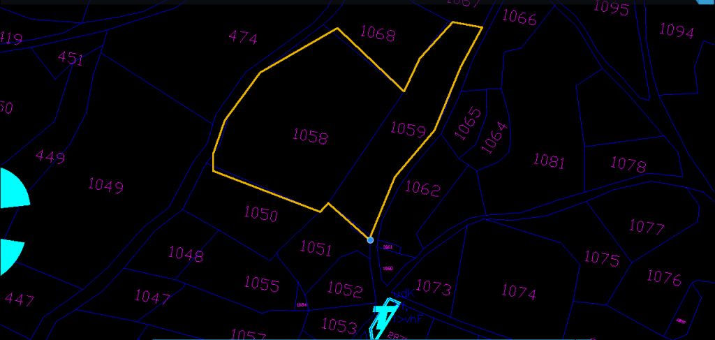 عقار رقم 1058: مربع الشكل مساحته 3 دونومات. يحده غرباً مجرى نبع المسيل.