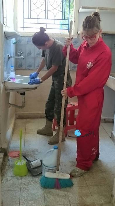 منذ ايام، دبّت الحياة بشكل مفاجئ في المنزل الذي تحوّل الى ورشة نفضت عنه غبار الفقر والاهمال وأحيت ألوانه الباهتة والاهم انّها انعشت الكرامة الانسانية والحق بسكن يليق بالانسان... تلاقت سواعد عناصر القبعات الزرق في الكتيبة الاسبانية مع شبيبة كاريتاس انطلاقا من شعار "العمل مع الانسان وكل انسان وكل الانسان" لاسترجاع معاني الحياة الكريمة لهاتين المسّنتين. كاريتاس تولّت تأمين المعدّات والمواد فيما تولّى الجنود الاسبان شبّانا وشابات اعمال التنظيف والصيانة وطلاء المنزل وتأهيل شبكة الكهرباء والصيانة وغيرها.