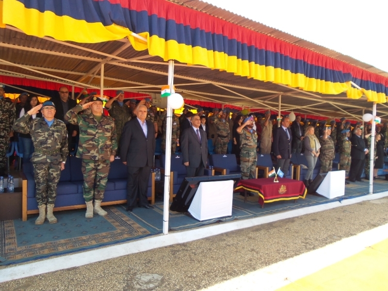 بعد أن استعرض الجنرال سينغ الفرق المشاركة من على متن سيارة مكشوفة قلدّ الجنرال سينغ، ضباط وجنود الكتيبة، "ميدالية الأمم المتحدة لخدمة السلام". ثم ألقى كلمة إستهلها بالقول، " لقد ساهمت الهند بما يقارب الثمانين الف جندي في حفظ السلام ومنذ وصولها الى لبنان في العام 1998، ساهمت الوحدات الهندية الى حد كبير في الحفاظ على السلام والاستقرار في المنطقة". واثنى على"جهود قائد الكتيبة الهندية 17 الكولونيل بارتا ساها ، وعلى اداء عناصرها لواجباتها العملانية بحس كبير من المهنية، نظراً لأهميتها في الحفاظ على السلام في أحد الأجزاء البالغة الدقة في منطقة عملياتنا".