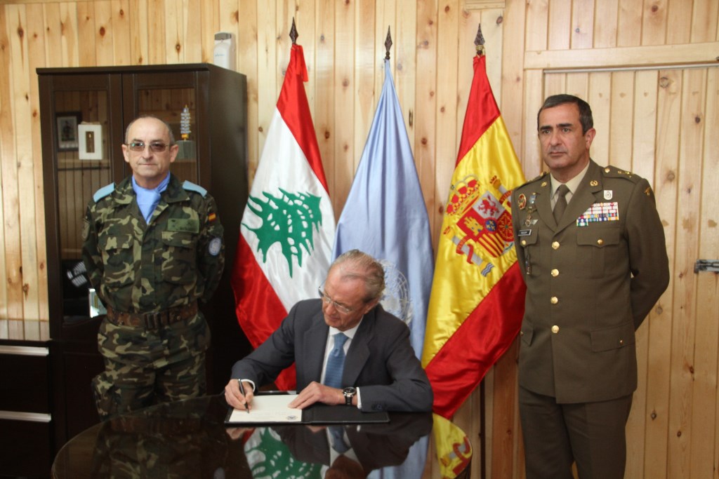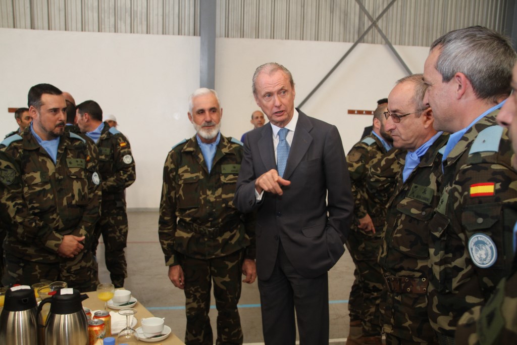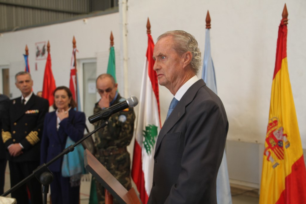 وكان وزير الدفاع مورينيس قد وصل من بيروت على رأس وفد من القادة و كبار ضباط الوزارة، الى قاعدة ميغيل دي سيرفنتس العسكرية الاسبانية على متن مروحية دولية حطت به في مهبط المروحيات حيث كان في استقباله القائد العام لليونيفيل الميجور جنرال لوتشيانو بورتولانو وقائد القطاع الشرقي الجديد الجنرال كابريرو وكبار ضباط الكتيبة الاسبانية، وقادة الكتائب الدولية العاملة في القطاع الشرقي ، بحضور السفيرة الاسبانية في بيروت ميلاغروس هيرناندو واركان السفارة .