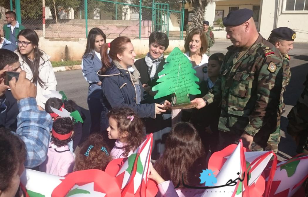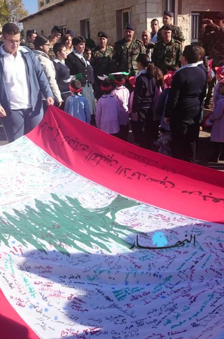أرادوها تحية للجيش في عيد #الاستقلال لأنّه المؤسسة الوطنية التي يعوّل عليها اللبنانيون لحماية وطنهم ومواجهة الارهاب... صغار وكبار من مختلف الصفوف والمراحل في ثانوية راهبات القلبين الأقدسين في جديدة مرجعيون حملوا علما لبنانيا كبيرا عليه شعار "تسلم يا عسكر لبنان يا حامي استقلالنا" وامضاء كل التلامذة والمعلّمين والادارة وسلّموه لقائد اللواء التاسع العميد الركن جوزف عون في ثكنة فرانسوا الحاج في جديدة مرجعيون بحضور مديرة المدرسة الاخت لبيبة مبارك وعدد من الضباط والعناصر.