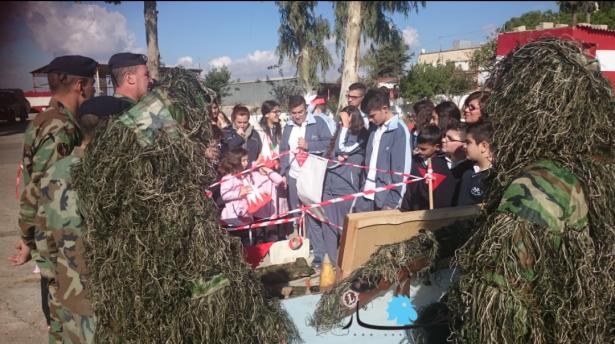 وتخليدا لهذه الذكرى، زرعوا شجرة أرز في باحة الثكنة حيث أنشدوا النشيد الوطني اللبناني والاغاني الوطني والعسكرية. والقى التلميذ حسين علي احمد كلمة بإسم المدرسة قال فيها: "هالارزة اللي نزرعت بلنان وتحدت، رح نزرعها بكل مطرح لتضل عنوان المجد والعنفوان ورمز لبنان اللي ما بتزعزعو ريح ولا عاصفة". وتسلّم عون من التلامذة مجسّم أرزة كتبوا عليها قسمهم بالبقاء اوفياء لأرضهم وحمل راية وطنهم، موحّدين ومتضامنين مع جيشه. وأوصاهم عون محبّة الوطن والدفاع عنه والتمسّك بالعلم اللبناني، ثمّ عرضت عناصر الجيش بعض الآليات العسكرية والأسلحة التي تستخدمها.