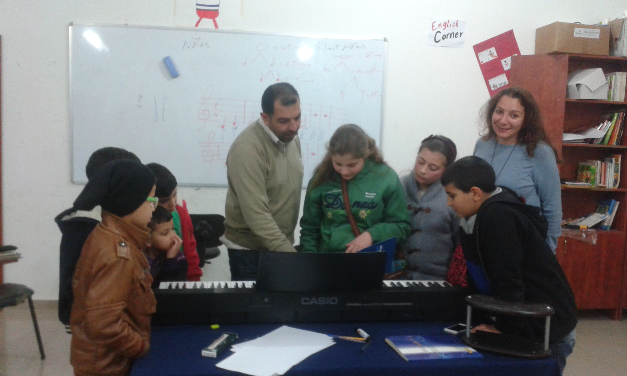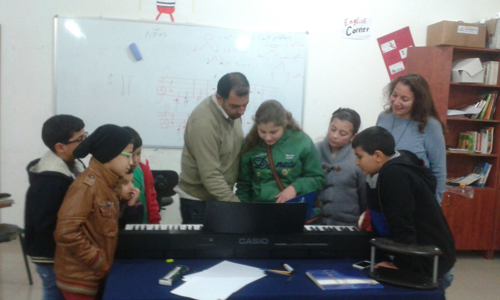 كما اريد ان اشكر السية منى كامل مرقص على تلبية حاجتنا الى صف الموسيقى ورعايتها لهذه الدورة والاستاذ انيس والطلاب الذين تجاوبوا معنا على امل تخريج اول دفعة في نهاية هذا العام ..