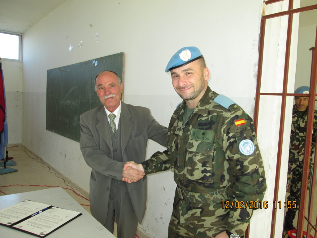 بداية النشيد الوطني وأناشيد الامم المتحدة اسبانيا والنيبال، ثم القى جواد كلمة شكر فيها "اليونيفيل" على المشروع، وقال: "هذا المشروع الذي فيه مصلحة المدرسة وتلامذتها هو لبنة في بناء الوطن ضمن مهمة الأمن والمحافظة على السلام الذي هو هدفنا الاساسي والمفتاح لحياة كريمة ينعم بها أبناؤنا بفضل جهودكم وتفانيكم، خصوصا أنكم تركتم أهلكم ومن تحبون لمشاركتنا العمل البناء والتخفيف عنا".