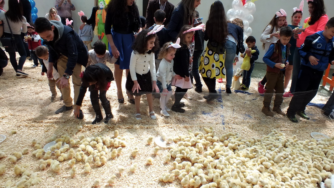 وتبارى الجميع كبارا وصغارا وسط فرحة عازمة في مفاقسة البيض وكسره، الذي يرمز ومعه الصوص الذي يخرج منه، كذلك الأرنب الى الربيع وتجدد الحياة والذي يرافق الإحتفالات بالفصح، تقليد يعود للقرون المسيحية الأولى، حيث كانت شعوب اوروبا تحتفل بعيد الخصب في أول الربيع، وترمز إلى إله الخصب بالأرنب، فهو رمز الخصوبة والإنجاب، ومنه تسربت تلك الطقوس الى احتفالات المسيحيين الاوائل بعيد الفصح.