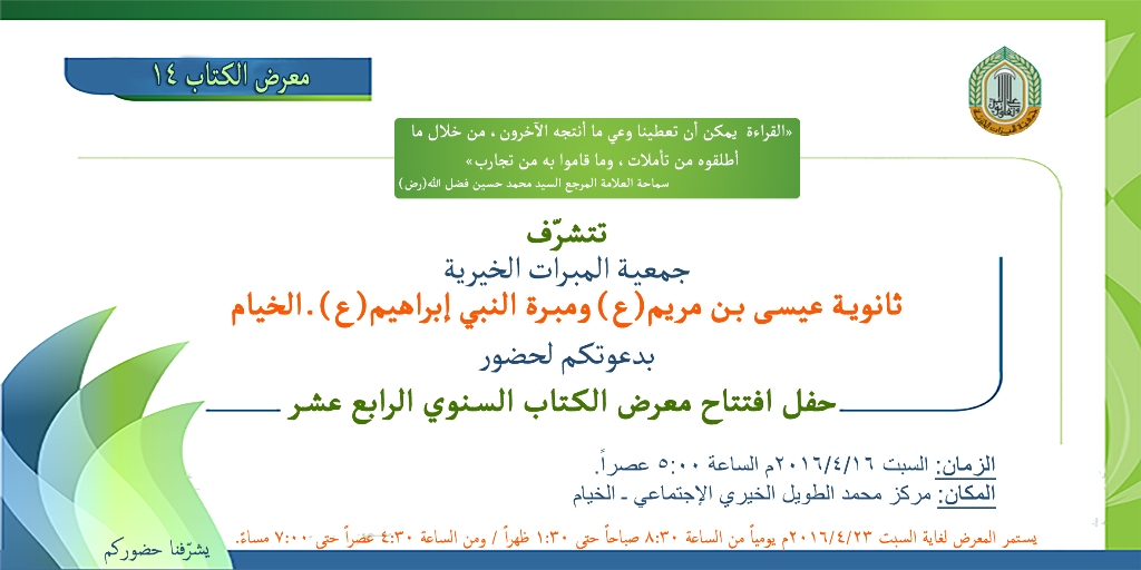 دعت ثانوية عيسى بن مريم ومبرة النبي ابراهيم لافتتاح معرض الكتاب السنوي 14.