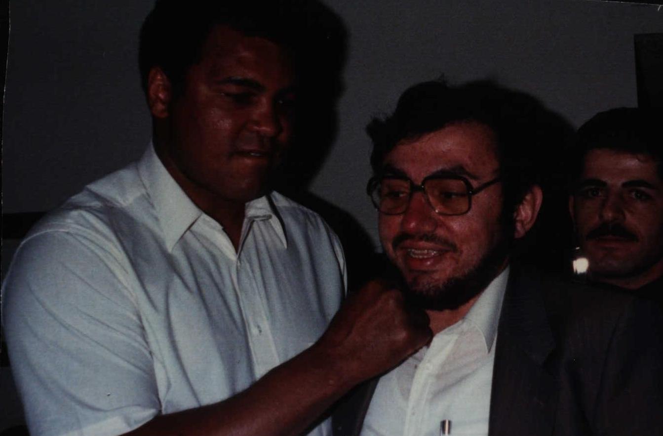 كنا ندرس في المرحلة الابتدائية أنا واخواني في كلية مرجعيون الوطنية، وكنا نقيم بالقسم الداخلي في نفس المدرسة، نظراً لسفر الأهل للعمل في أفريقيا (1970-1973م)، وكان هناك عادة جيدة في جديدة مرجعيون حينذاك، بأن كل وفد اغترابي زائر للبلدة يجب أن يقوم بزيارة تفقدية للمدرسة كجزء من برنامج زيارته للمنطقة، (هناك آلاف اللبنانيين المتحدرين من جديدة مرجعيون موزعون في مختلف أصقاع عالم الانتشار اللبناني)، ويلتقي الوفد بالتلاميذ وبالأخص المقيميين بالقسم الداخلي نظرا لتواجدهم الدائم بالمدرسة وبالأخص في عطلة نهاية الأسبوع، حيث يلقي رئس الوفد كلمة بينهم ومن ثم يبدأ الوفد بالإجابة بمنتهى روح الإيجابية على أسئلة التلاميذ العفوية وقد تكون ساذجة في بعض الأحيان، وتشاء الصدف أن يأتي لزيارة المدرسة في عام (1972م) وفد اغترابي من ولاية كاليفورنيا بأميركا، ويكون على رأس الوفد مكتشف وأول مدرب محترف للبطل العالمي محمد علي كلاي وكان المدرب من عائلة (سلامة) المعروفة في جديدة مرجعيون، فروى لنا بإيجاز مسيرة البطل وظروف إدخاله السجن، وخروجه منه والعمل بعزمٍ وجدٍ على استعادته للقب العالمي مهما تحمل من صعاب جمة ومشاق عسيرة . فسرحت مخيلتي حينذاك، وخاطبتي نفسي، ان كنت وأنا طفل قد التقيت بالمكتشف والمدرب الأول للبطل العالمي، فهل سوف تسنح الصدف مرة أخرى ويجود الزمان بفرصة اللقاء بالبطل العالمي نفسه في يوما ما.