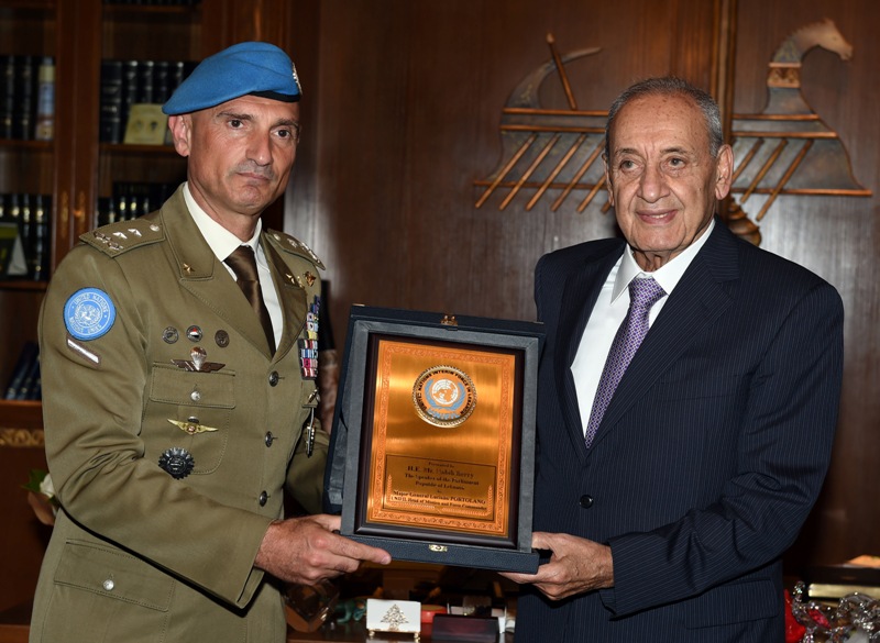 الرئيس برّي مستقبلا الجنرال بونولانو في زيارة وداعية