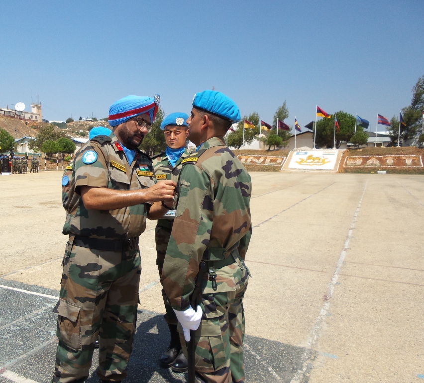 ثم قلد الجنرال سانديب باجاج والنائب هاشم والعميد ابو خليل، اوسمة خدمة السلام الى عناصر الكتيبة المغادرة تقديراً لجهودهم المستمرة في حفظ السلام والإستقرار، وتقديم الخدمات الإجتماعية والإنسانية والطبية للسكان المحليين في الجنوب اللبناني.