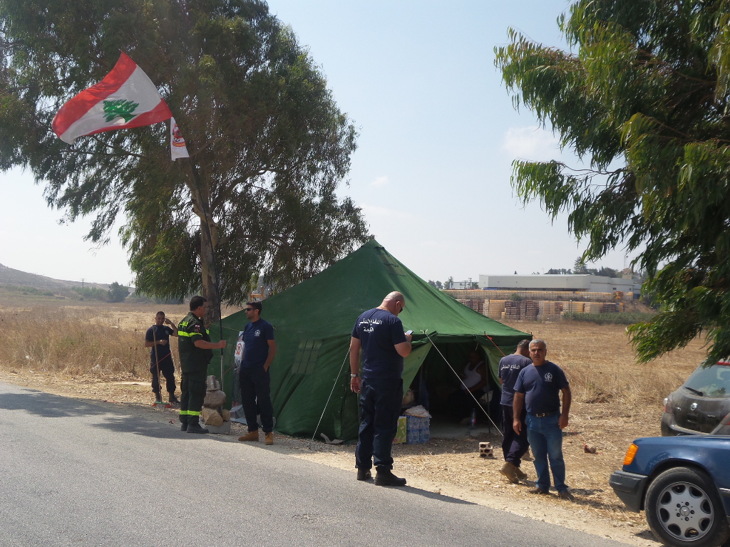 نفذ متطوعو الدفاع المدني، منذ الساعة السابعة والنصف صباحا، اعتصاما في سهل مرجعيون عند الحدود - اللبنانية - الفلسطينية قبالة مستعمرة المطلة، حيث قاموا بنصب خيمة قرب الطريق رفعوا عليها صورة شهيد الواجب عاصم ابو رافع. شارك في الاعتصام متطوعين من كل مراكز الدفاع المدني في لبنان، بعد ان قاموا بتنظيف وإزالة الحشائش والاعشاب اليابسية من محيط الخيمة، كما استقدموا براميل للمياه ومستلزمات الاقامة الطويلة من مراحيض في توجه للبقاء مدة طويلة عند الحدود. في وقت عمد عدد من العناصر الى التقدم الى مقربة من السياج التقني الفاصل والخط الازرق، حيث حضرت للحال دورية للعدو مؤلفة من جيبي هامر عمد عناصرها الى تصويب السلاح باتجاههم. ثم مالبثت ان غادرت بعد عودة عناصر الدفاع المدني الى الخيمة.كما حضرت دورية من الجيش وقوى الامن للمحافظة على سلامة العناصر وتنظيم السير بالاتجاهين بعدما سبب وجودهم زحمة للسيارات المتجهة الى الوزاني.واشار الكابتن يوسف ملاح ، ان الاعتصام يهدف الى توجيه رسالة الى قوات الطوارئ او الجهات المانحة كي تلتفت الى وجودهم وترفع الصوت، و علّ الصوت يصل الى المعنيين،