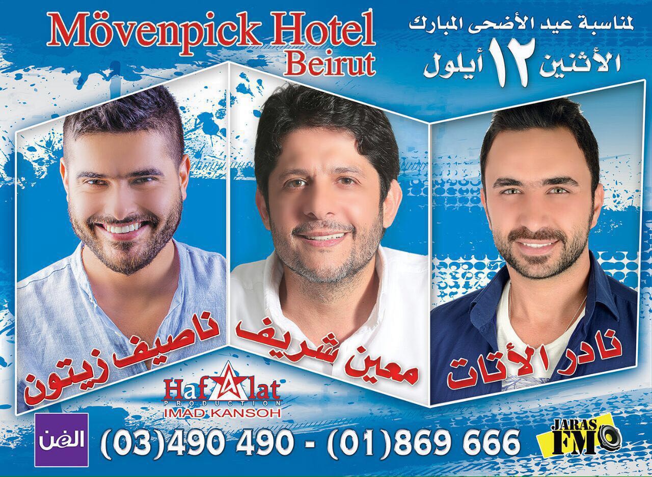 أحيا الفنان معين شريف والفنان نادر الاتات والفنان ناصيف زيتون حفلا غنائيا ناجحاً في بيروت بمناسبة عيد الأضحى من تنظيم متعهد الحفلات عماد قانصو.
