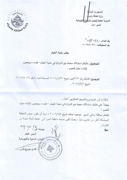 لقد وافق المجلس البلدي السابق (2010 ـ 2016) برئاسة المهندس عباس عواضة، في «جلسته المنعقدة بتاريخ 19 آذار 2016، المكتملة النصاب قانوناً، على استملاك 20 متراً من محيط نبعالدردارة». وكلف رئيس البلدية «اتخاذ الإجراءات اللازمة لوضع هذا القرار موضع التنفيذ وفقاً للأصول». واشار القرار إلى «أننا تقدّمنا في وقت سابق عبر قرار (م. ب.) بطلب استملاك 10 أمتار من محيط نبع الدردارة. وبناء على موافقة المديرية العامة للموارد المائية والكهربائية في وزارة الطاقة على مشروع الاستملاك موافقة مشروطة باستملاك البلدية لما يزيد عن 20 متراً من محيط النبع، بحيث تكون من ضمنه منطقة الحرم التي تحفظ البيئة سليمة من التلوث، وهو ما يخدم المصلحة العامة. وحيث إن المجلس البلدي يُولي عناية خاصة لنبع الدردارة يجعله متنزهاً للعموم باعتباره موقعاً سياحياً».